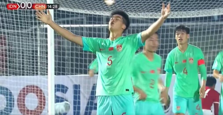 逆足爆射攻破袋鼠球门!彭啸破门后双手张开模仿贝林厄姆庆祝
